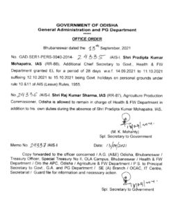 ଭୁବନେଶ୍ୱର, ୧୪/୯: ଲମ୍ବା ଛୁଟିରେ ଗଲେ ପ୍ରଦୀପ୍ତ ମହାପାତ୍ର । ସ୍ବାସ୍ଥ୍ୟ ବିଭାଗ ACS ପ୍ରଦୀପ୍ତ ମହାପାତ୍ର ୨୮ ଦିନିଆ ଛୁଟିରେ  ଛୁଟିରେ ଯାଇଥିବା ନେଇ ସୂଚନା ମିଳିଛି।  ସ୍ୱାସ୍ଥ୍ୟଗତ କାରଣ ଦର୍ଶାଇ ଅକ୍ଟୋବର ୧୫ ପର୍ଯ୍ୟନ୍ତ ଛୁଟିରେ ରହିବେ ପ୍ରଦୀପ୍ତ । ପ୍ରଦୀପ୍ତଙ୍କ ଦାୟିତ୍ବ ତୁଲାଇବେ କୃଷି ଉନ୍ନୟନ କମିସନର ଆର‌‌.କେ ଶର୍ମା।