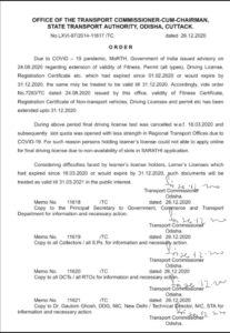ଭୁବନେଶ୍ୱର, ୨୭/୧୨: ମାର୍ଚ୍ଚ ୩୧ ଯାଏ ବଢ଼ିଲା ଲର୍ଣ୍ଣର୍ସ ଲାଇସେନ୍ସ ଅବଧି। LL ଅବଧି ବୃଦ୍ଧି କରିଛି ରାଜ୍ୟ ପରିବହନ ଅଥରିଟି। ପୂର୍ବରୁ ଲର୍ଣ୍ଣର୍ସ ଲାଇସେନ୍ସର ସମୟ ସୀମା ଥିଲା ଡିସେମ୍ବର ୩୧ ।