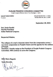 ନୂଆଦିଲ୍ଲୀ , ୨୮/୯ : ଆଜି ନବଜୋତ ସିଂ ସିଦ୍ଧୁ ପଞ୍ଜାବ କଂଗ୍ରେସ ସଭାପତି ପଦରୁ ଇସ୍ତଫା ଦେଇଛନ୍ତି। କଂଗ୍ରେସ ଅଧ୍ୟକ୍ଷା ସୋନିଆ ଗାନ୍ଧୀଙ୍କୁ ପଠାଇଛନ୍ତି ଇସ୍ତଫା ପତ୍ର । ତାଙ୍କ ଇସ୍ତଫା ପତ୍ରରେ ସେ କହିଛନ୍ତି ଯେ ପଞ୍ଜାବର ଭବିଷ୍ୟତ ଏବଂ ପଞ୍ଜାବର କଲ୍ୟାଣ ପାଇଁ ଏଜେଣ୍ଡା ଉପରେ କଦାପି ଆପୋଷ ବୁଝାମଣା କରିପାରିବି ନାହିଁ। ତେଣୁ ମୁଁ ପଞ୍ଜାବ ପ୍ରଦେଶ କଂଗ୍ରେସ କମିଟିର ସଭାପତି ପଦରୁ ଇସ୍ତଫା ଦେଉଛି।ଏହା ମଧ୍ୟ ସେ କହିଛନ୍ତି ଯେ ଇସ୍ତଫା ଦେଲେ ମଧ୍ୟ କଂଗ୍ରେସର ସେବା ଜାରି ରଖିବେ। ପଞ୍ଜାବ ବିଧାନସଭା ନିର୍ବାଚନ ପୁର୍ବରୁ ରାଜ୍ୟରେ କଂଗ୍ରେସରେ ସବୁକିଛି ବର୍ତ୍ତମାନ ଠିକ ଚାଲୁନାହିଁ । ସୂଚନାଯୋଗ୍ୟ ଯେ ପୁର୍ବରୁ ସିଦ୍ଧୁଙ୍କ ସହିତ ବିବାଦ ପରେ କିଛି ଦିନ ତଳେ ତାଙ୍କୁ ବାରମ୍ବାର ଅସମ୍ନାନିତ କରାଯାଇଥିବା କହି ମୁଖ୍ୟମନ୍ତ୍ରୀ ପଦରୁ ଇସ୍ଥଫା ଦେଇଥିଲେ କ୍ୟାପ୍ଟେନ୍ ଅମରିନ୍ଦର ସିଂ ।