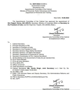 ଭୁବନେଶ୍ୱର,୧୮/୮: ରାଷ୍ଟ୍ରପତି ଦ୍ରୌପଦୀ ମୁର୍ମୁଙ୍କ ସଚିବ ଭାବେ ନିଯୁକ୍ତ ହୋଇଛନ୍ତି ରାଜେଶ ବର୍ମା । ୧୯୮୭ ବ୍ୟାଚ ଆଇଏଏସ ହେଉଛନ୍ତି ରାଜେଶ ବର୍ମା । କ୍ୟାବିନେଟ ନିଯୁକ୍ତି କମିଟି ରାଜେଶଙ୍କ ନିଯୁକ୍ତିଙ୍କୁ ମଞ୍ଜୁରୀ ଦେଇଛନ୍ତି । ବର୍ତ୍ତମାନ ରାଜେଶ ବର୍ମା କେନ୍ଦ୍ର କର୍ପୋରେଟ ବ୍ୟାପର ବିଭାଗର ସଚିବ ଅଛନ୍ତି ।ପୂର୍ବରୁ ସେ ମୁଖ୍ୟମନ୍ତ୍ରୀ ନବୀନ ପଟ୍ଟନାୟକଙ୍କ ପ୍ରମୁଖ ସଚିବ ଭାବେ ମଧ୍ୟ କାମ କରିଛନ୍ତି ।